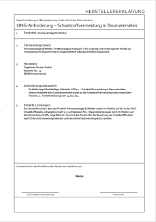 Muster-Herstellererklärung Riemchen: QNG-Anforderung – Schadstoffvermeidung in Baumaterialien (03/2025)